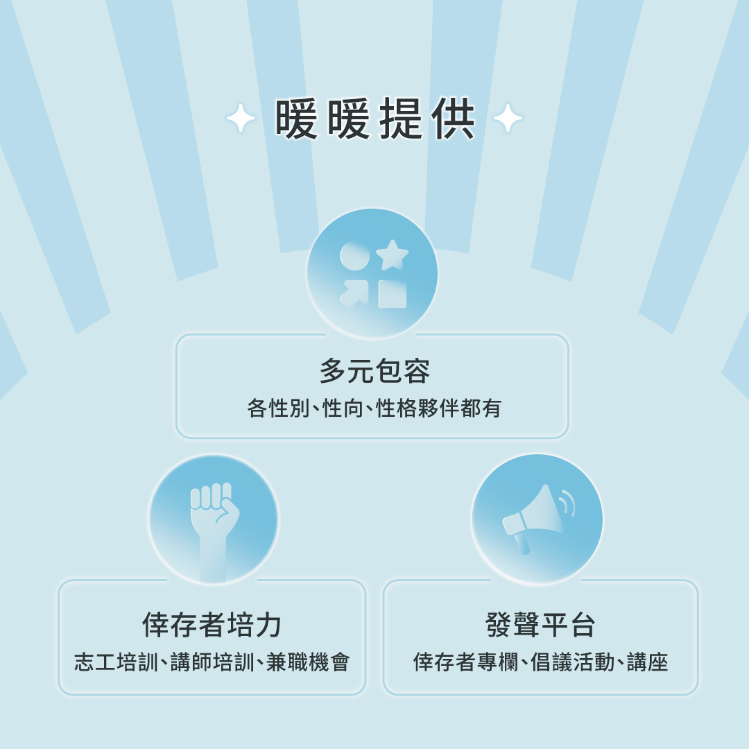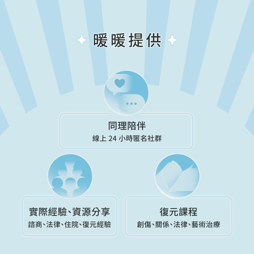| 加入倖存者匿名社群 | 參與社群專屬活動 |